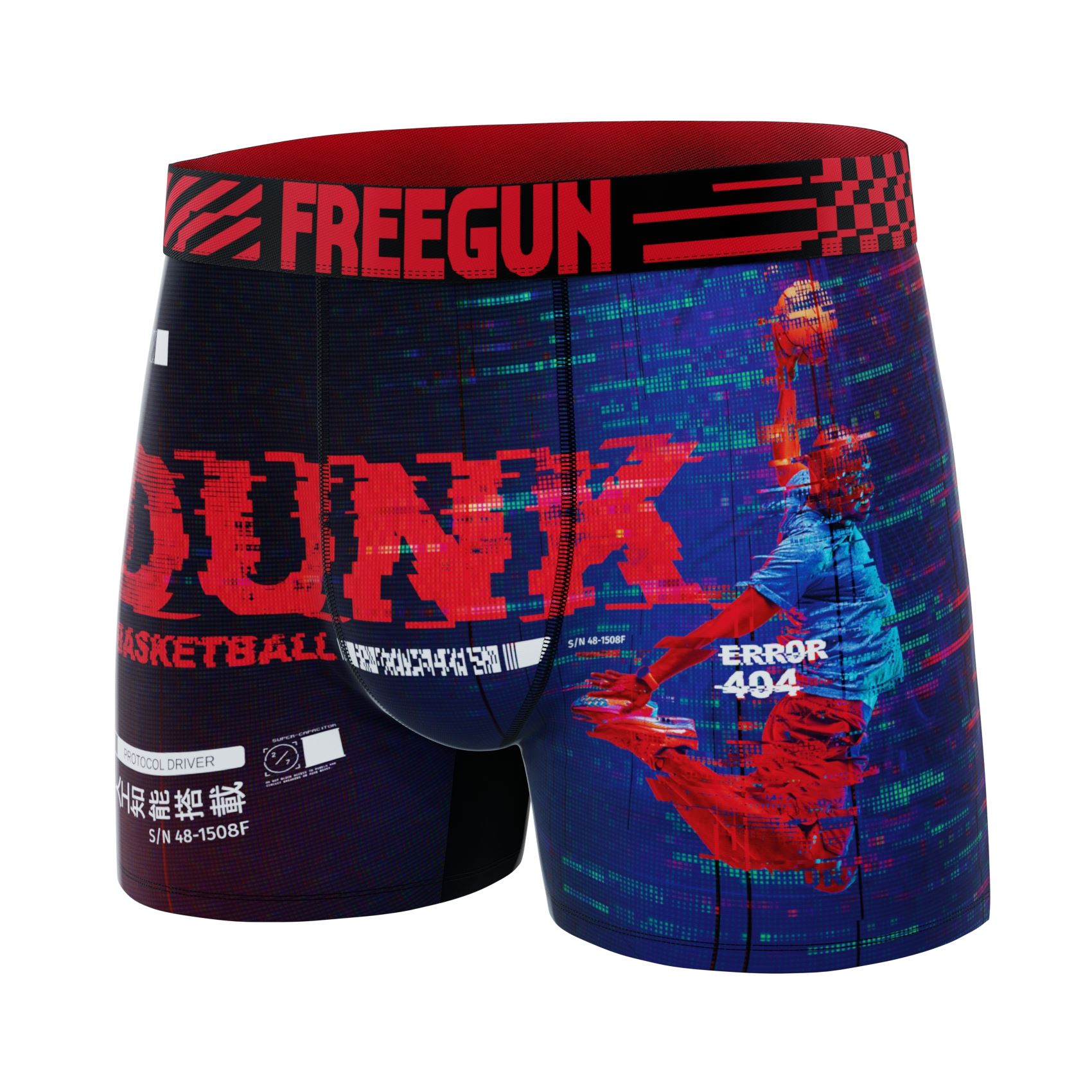 Freegun boxer in blauw met rood, met een basketbal dunk print!