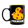 Freegun Canard mok, zwart met gele eendjes.